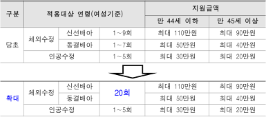 체외수정에서 신선배아 1~9회, 동결배아 1~7회에서 20회로 확대되었습니다.